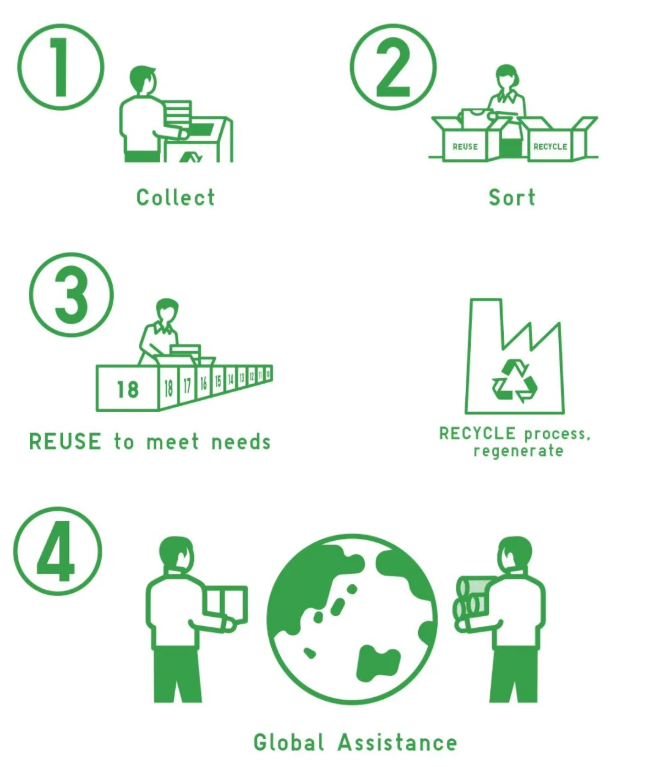 另外,優(yōu)衣庫還強(qiáng)調(diào)稱,支援難民的童裝、嬰幼兒裝有約100萬件的缺口,因此將加強(qiáng)在“童裝、嬰幼兒裝”品類的回收。RE.UNIQLO 的“前身”是優(yōu)衣庫在2006年發(fā)起的“全商品回收活動(dòng)”,在添加“向難民捐贈(zèng)服裝”、“重復(fù)使用(REUSE)”等環(huán)節(jié)的同時(shí),逐步構(gòu)建出當(dāng)前的循環(huán)再利用(RECYCLE)體系。從消費(fèi)者手中回收的衣物,除了捐贈(zèng)、再生為新衣物之外,部分還會(huì)回收制成其它用途的材料,例如汽車隔音材料、固體燃料。
